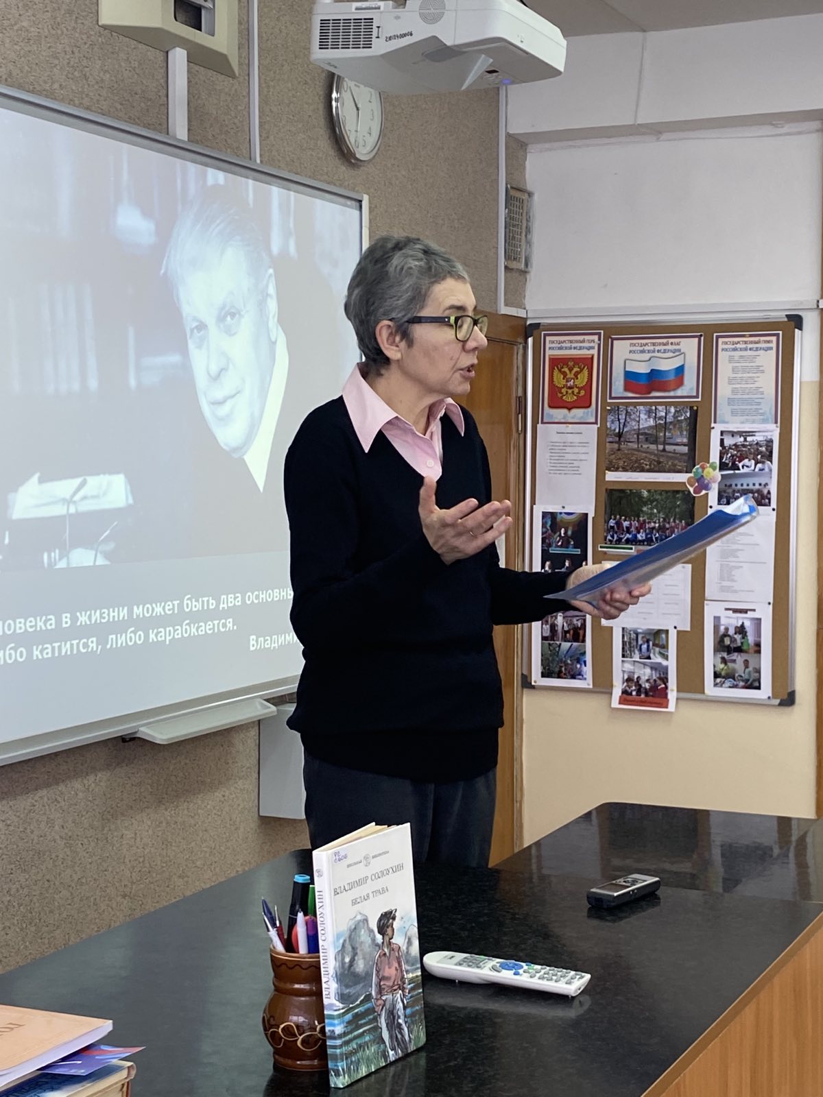 Неля Юрьевна рассказала ребятам о своей работе в библиотеке, об интересных мероприятиях, которые подготовлены специально для подростков, познакомила учеников с новыми проектами и ответила на вопросы пятиклассников. Еще она познакомила ребят с биографией Владимира Алексеевича Солоухина, интересно было узнать о том, как творчество этого писателя связано с нашим Владимирским краем.
